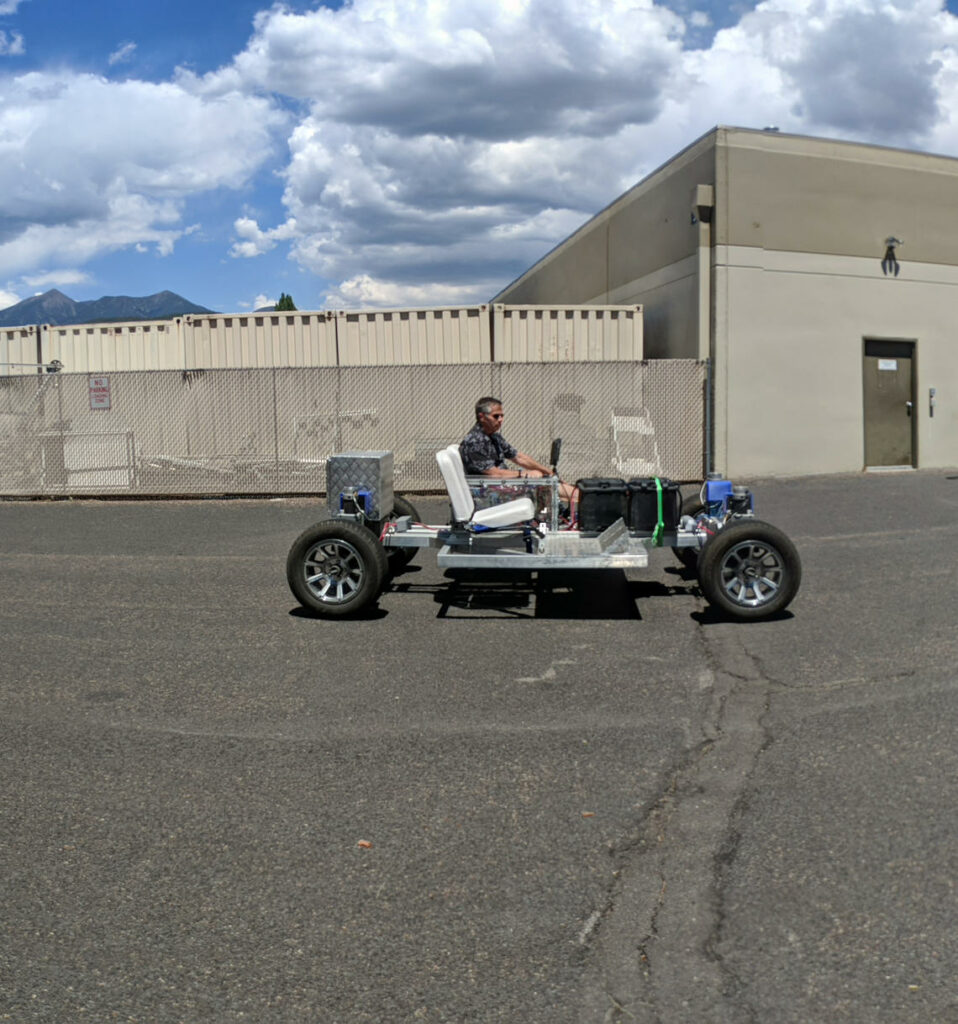 El vehículo en sí, cuenta con una distancia entre ejes parecida a la de un jeep, tiene un peso aproximado de 500 kilogramos; sin embargo, tiene una capacidad de carga de unas 3.300 libras; es decir casi la misma capacidad de una camioneta de servicio liviano. Posee unas baterías que se alimentan por energía solar totalmente cargadas; puede conducir por 8 horas continuas y cuenta con suficiente capacidad de energía como para sobrevivir al frío extremo de una noche lunar, aseguró Matthews.