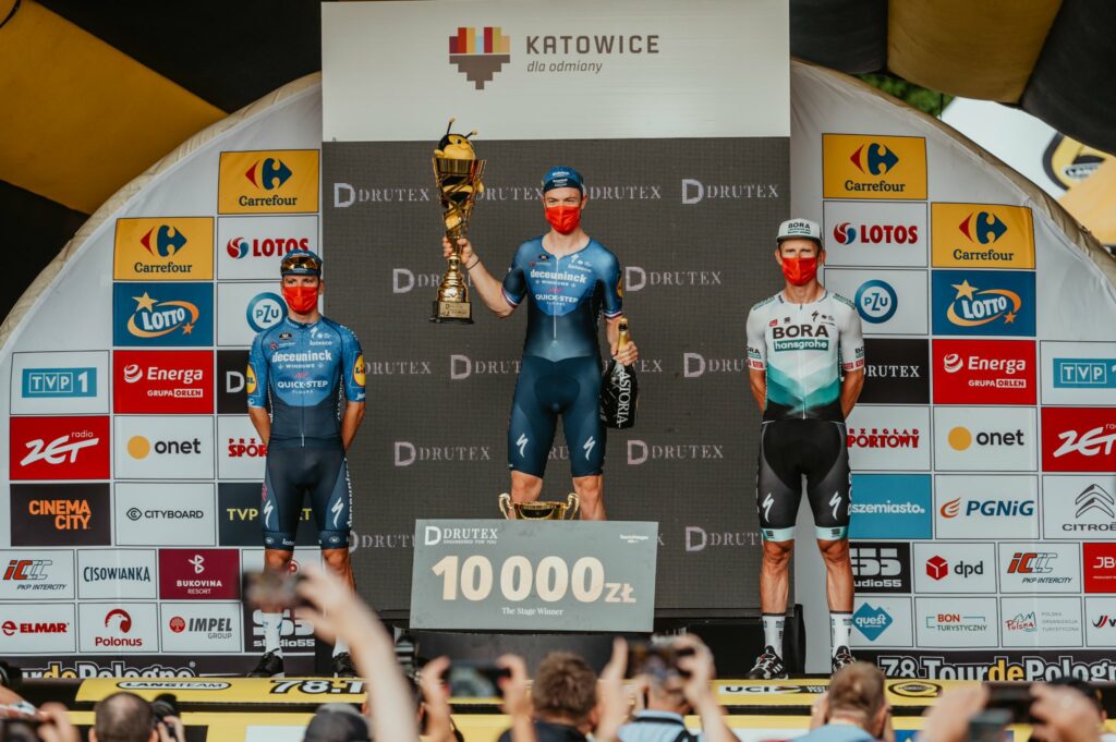 El podio lo completó el corredor local Maciej Bodnar, del Bora-Hansgrohea, a 16’’ del líder, seguido por el danés Mikkel Bjerg (UAE Team Emirates), a 18. A esa misma distancia, se ubicó el también polaco Michał Kwiatkowski, del Ineos Grenadiers, en la quinta plaza.