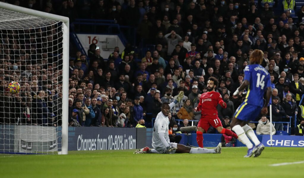 El primer tanto del encuentro se hizo presente antes de llegar a la fracción 10. Mané aprovechó un error del central Chalobah para entrar al área, regatear a Mendy y poner arriba a la visita. Seguidamente, se le unió Salah, que le marcó un pase a Alexander-Arnold para meterse al área por derecha. Ante la marca de Marcos Alonso, el egipcio lo amagó con un movimiento corporal y luego, definió pegado al palo del golero senegalés.