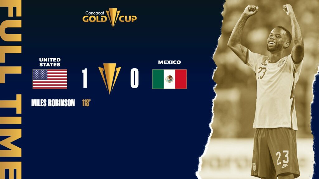 En un lapso de 56 días, el combinado nacional de los Estados Unidos derrotó dos veces a su similar de México en el partido cumbre de un torneo continental. Primero, el conjunto norteamericano con sus principales elementos, se impuso en una gran final en la primera edición de la Liga de Naciones de la CONCACAF, por marcador de 3-2 en tiempo extra. Y ahora, con un equipo alternativo, los estadounidenses vuelven a someter a sus vecinos. En este caso en la Copa Oro, también necesitando de la prórroga para triunfar por 1-0.