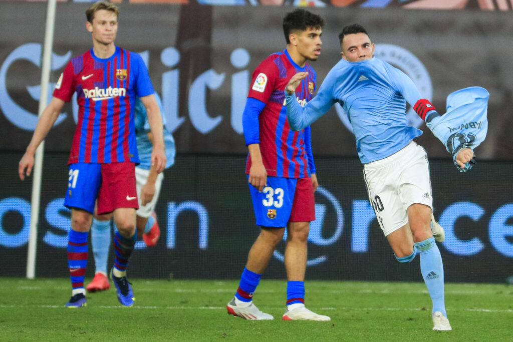 Pero esto no fue todo, llegando a la hora de partido, Nico González, el mejor de la visita hasta entonces, también tuvo que abandonar la cancha por un aparente problema muscular. En su lugar entró Riqui Puig. Y nada más al iniciar la segunda parte, el Celta se abalanzó sobre el área rival en busca del descuento; lográndolo por intermedio de su capitán, Iago Aspas, tras un error previo de ter Stegen, a los 52’.