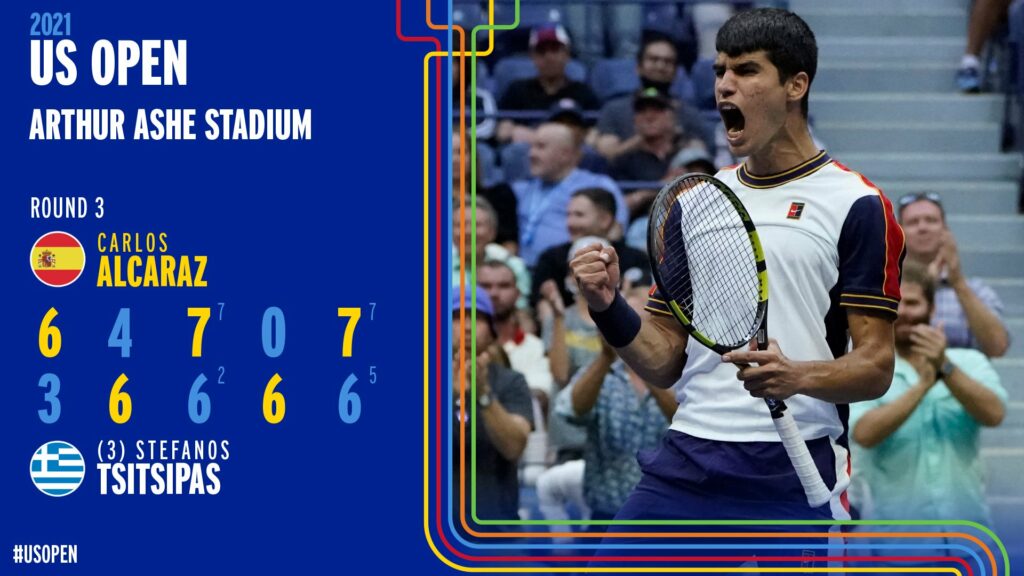 La gran promesa del tenis español, el juvenil de 18 años Carlos Alcaraz, dio este viernes el gran batacazo en lo que va de US Open 2021. En un épico encuentro que llegó al máximo de parciales, el de la clase del 2003 liquidó al tercer máximo aspirante a consagrarse en el torneo, el griego Stéfanos Tsitsipás, en un duelo que se extendió por poco más de cuatro horas, perteneciente a la tercera ronda.