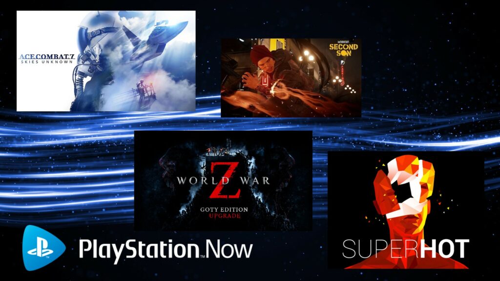 El anuncio confirma cuatro títulos que se añadirán al catálogo de juegos de PlayStation Now este mes. PS se manifestó a traves de su cuenta de Twitter: «Vuela a la batalla con Ace Combat 7: Skies Unknown, que se une a la alineación de PlayStation Now junto a InFamous: Second Son.»