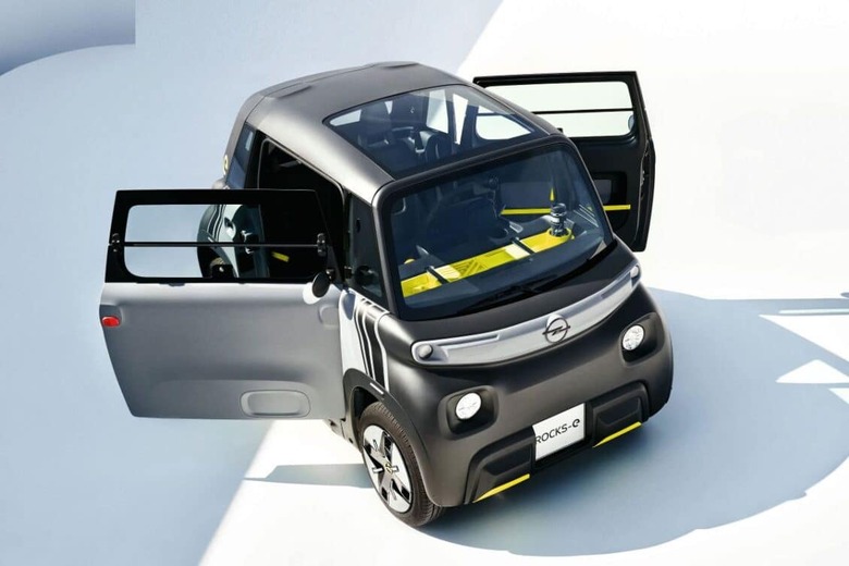 Si se observa con detenimiento, el Opel Rocks-e es un coche que parece casi idéntico por delante y por detrás. Su angulosa carrocería es un placer para la vista, y la forma en que Opel se ha expresado con diferentes combinaciones de amarillos y grises es más atractiva que la de su primo, el Citroën AMI.