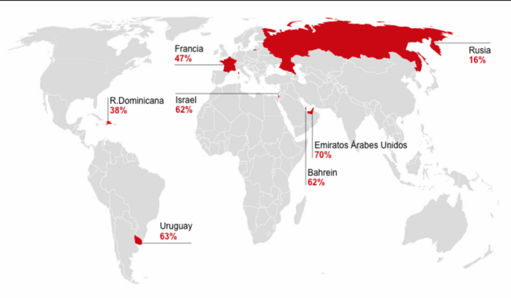 A pesar de lo que ha dicho la CDC y otros entes de salud sobre la tercera dosis de la vacuna, varios países decidieron aprobarla. Rusia, Israel y Republica Dominicana han optado por adquirir la tercera dosis como refuerzo a las anteriores. Pero no solo estos tres países hay muchos más que ya han manifestado también tener ese complemento para hacerle frente al Covid-19.